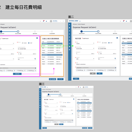 將內部差旅系統自動化為,電腦版手機版上傳檔案,優化UIUX介面及串接API